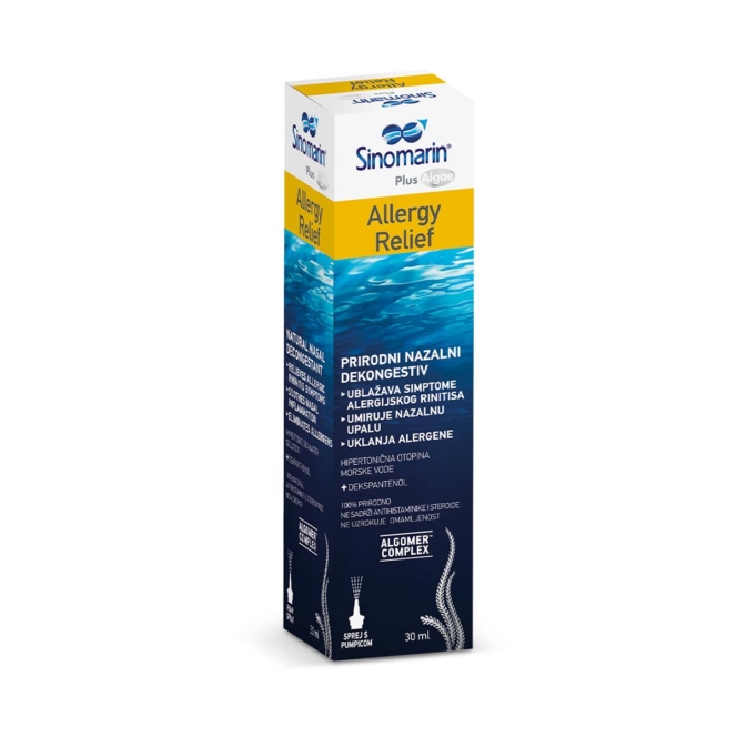 Sinomarin® Plus Algae Allergy Relief s Algomer™ kompleksom je 100 % prirodni sprej koji ublažava nazalne simptome povezane sa sezonskim ili kroničnim alergijama.