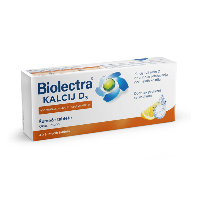 Biolectra Kalcij D3 šumeće tablete su dodatak prehrani sa sladilima i okusom limuna.